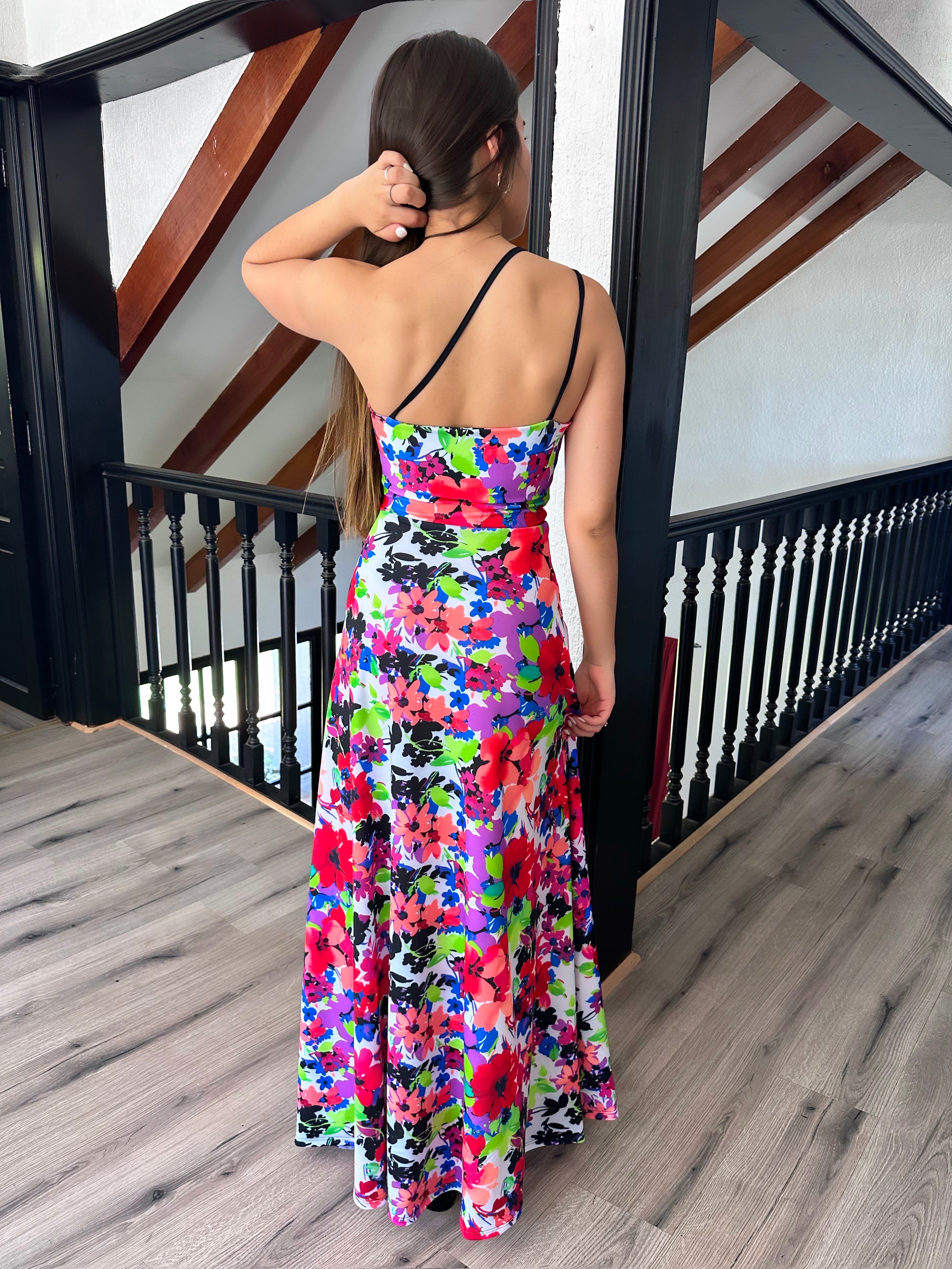 Este vestido Maxi Simona con escote ajustable se adapta a tu figura y estilo, ofreciendo un toque sofisticado y sensual. Su diseño de falda semi plato le da una caída hermosa y fluida, ideal para destacar en cualquier fiesta o celebración.
