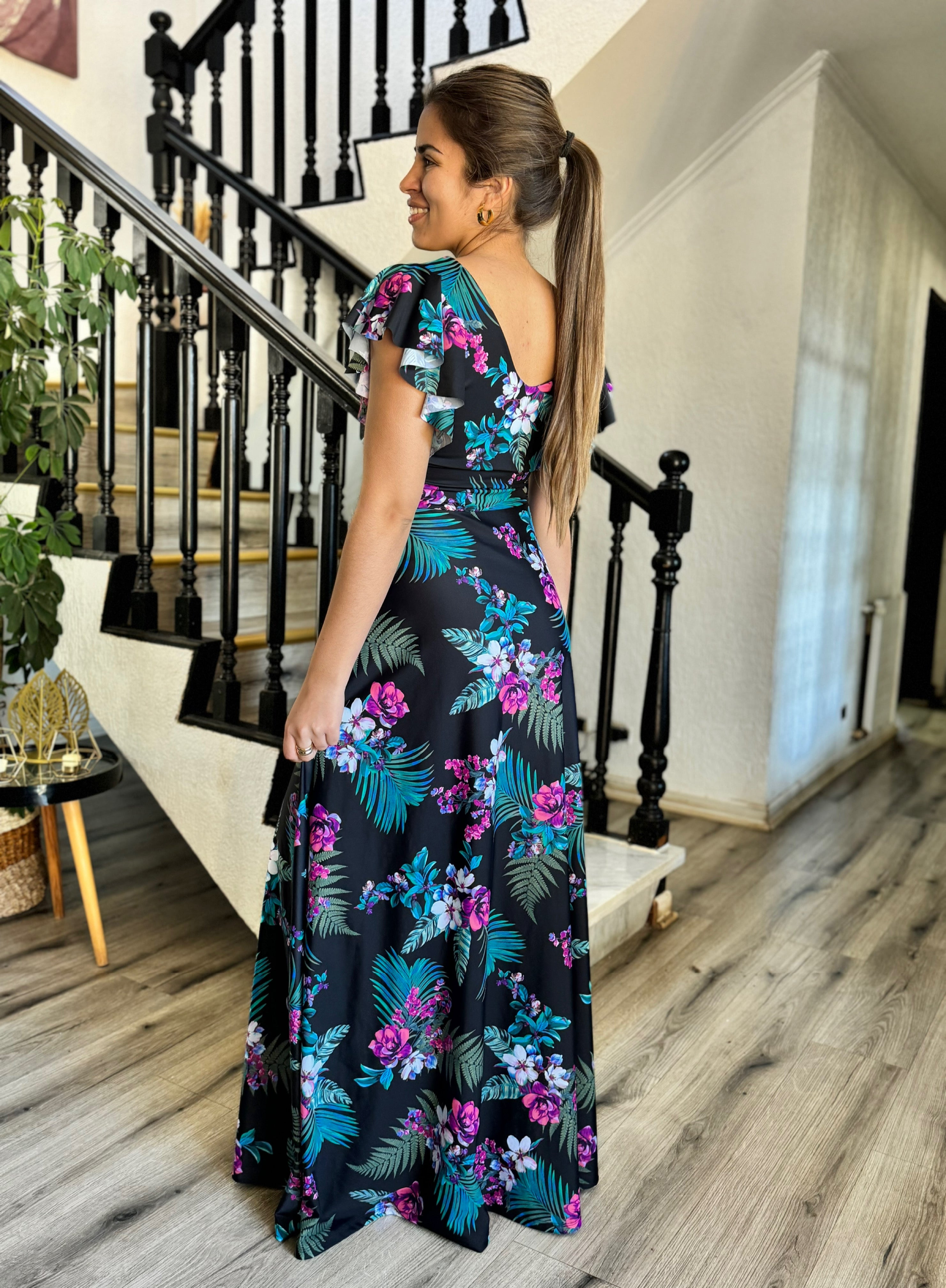 Luce increíble en cualquier ocasión especial con el Maxi Dress Pepa, con vuelos en las mangas. Su diseño permite usarlo sin sostén gracias a su excelente sustento, combinando comodidad y estilo.