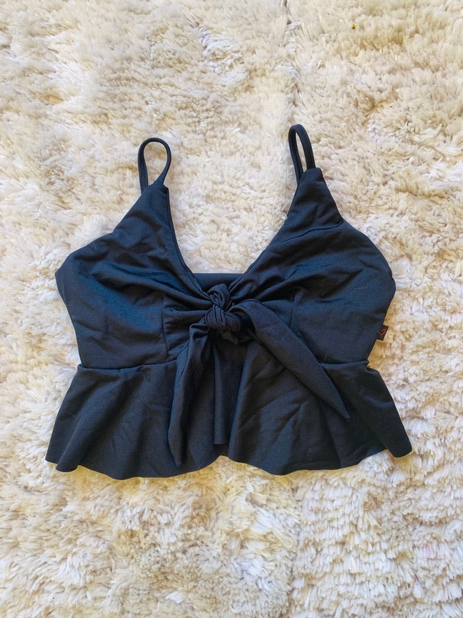 Destaca con este top de bikini con vuelo amarrado al centro, que aporta un toque femenino y coqueto. Confeccionado en doble tela, brinda un sustento óptimo al busto sin necesidad de relleno, combinando comodidad y estilo en cada movimiento.