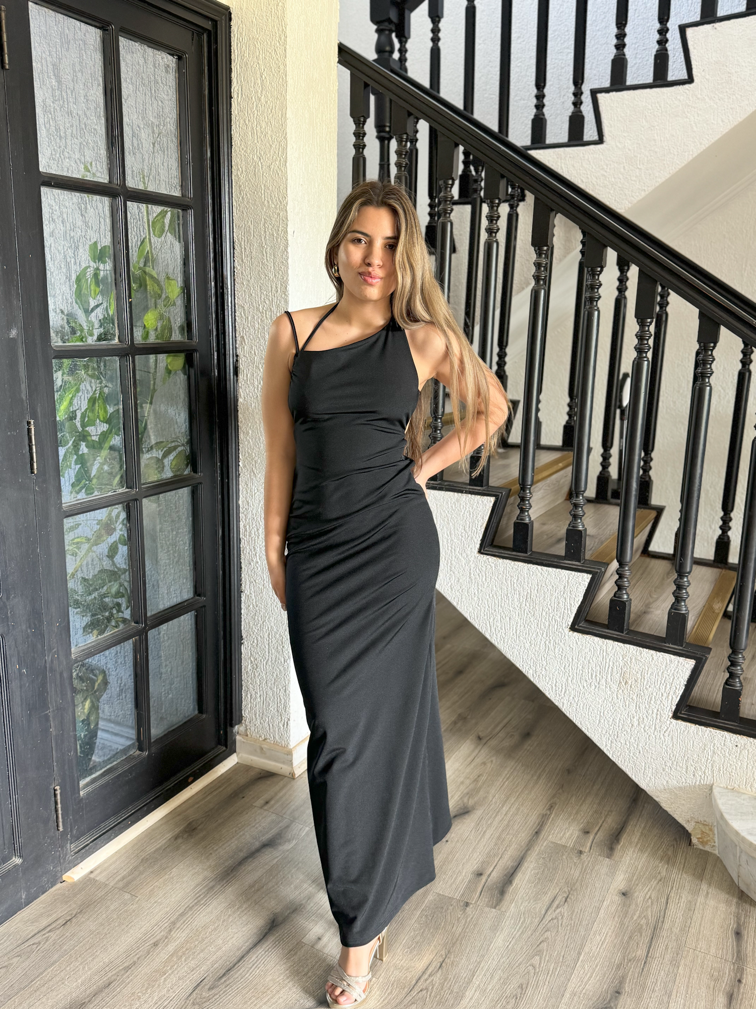 Luce espectacular en cualquier ocasión especial con el Vestido Diva, un vestido largo diseñado para resaltar tu figura y aportar elegancia en cada movimiento. Su escote desigual crea un efecto sofisticado y moderno, mientras que el elástico en la zona de los glúteos realza y define la silueta de manera favorecedora, proporcionando un ajuste cómodo y estilizado. La caída de la falda es fluida, ofreciendo un movimiento femenino y elegante que lo hace perfecto para fiestas, eventos o celebraciones especiales.