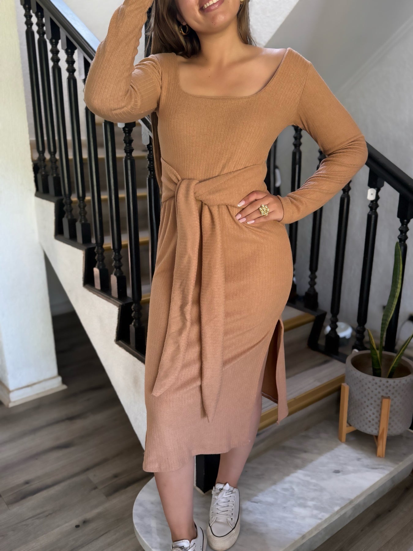 Luce elegante y estilizada con el Vestido Gio Lazo, un vestido ajustado largo con amarra en la cintura que realza tu figura y aporta un toque sofisticado a tu look. Perfecto para cualquier ocasión especial donde quieras destacar tu silueta.