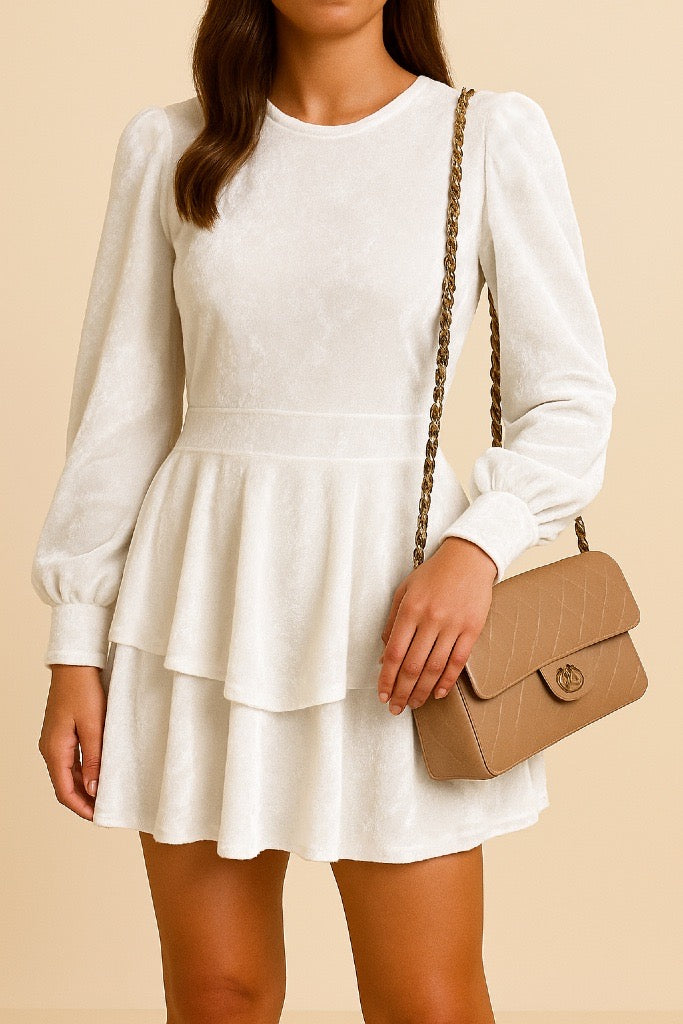 • Vestido con manga aglobada, y doble vuelo corte plato