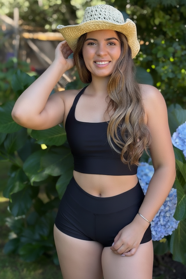 Te encantará este diseño 2 en 1, perfecto para ir al gym o lucir como bikini. El top Venus con doble tela ofrece excelente soporte sin necesidad de relleno, mientras que el borde combina con el color predominante del estampado, aportando un detalle moderno y armonioso.